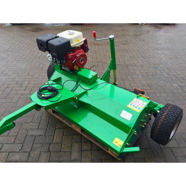 На подрібнювач ATV встановлений бензиновий двигун потужністю 15 к. с., клинові зубчасті ремені, що регулюються за висотою задній опорний каток, регульовані за висотою транспортні пневматичні колеса, передні захисні пластини, що захищають від викиду сторонніх тіл під час роботи, бічні лижі.